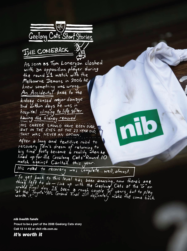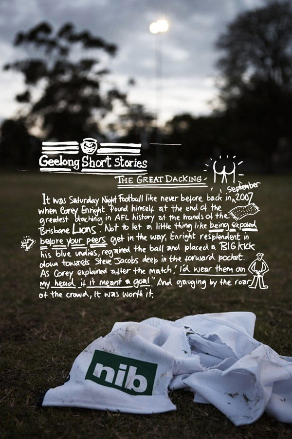 nib were the ‘shorts’ sponsors of the Geelong Cats. Being from NSW, these nib ‘short stories’ were created to show a real understanding of AFL, and the Geelong team.