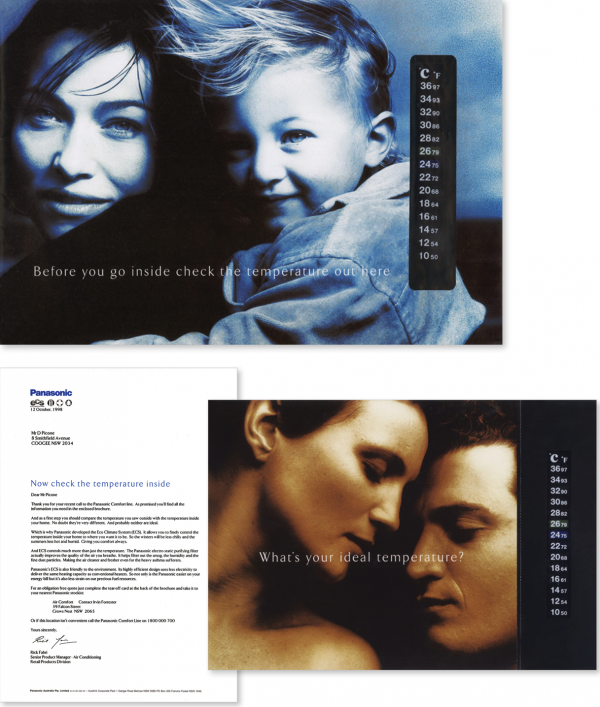Showing through the envelope is a working thermometer and you are asked to check the current temperature outside. When you are inside your home and you open the pack, you are then asked to check the temperature again, to see the difference between inside and out. The brochure then asked what your ideal temperature would be in certain situations
