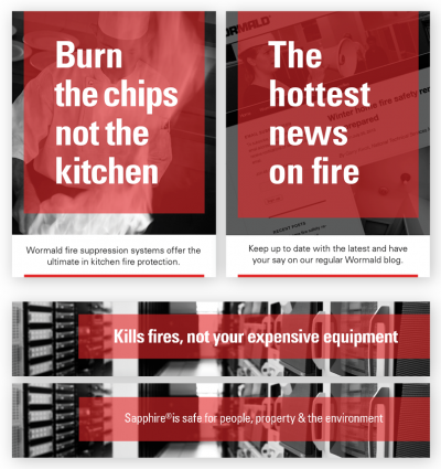 Simple B2B tiles and banners that re-enforce the major benefits of Wormald’s many products and services.
